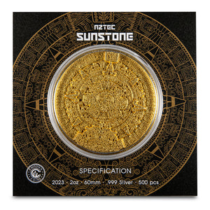 Elevate your collection with the 2023 Gold Gilded 2oz Silver Aztec Sunstone Stacker, a limited edition with only 500 minted. This exquisite piece features a rich gold plating over fine silver, capturing the intricate Aztec Sunstone design. Its stunning craftsmanship makes it a striking addition that holds both cultural significance and tangible value, perfect for stacking or showcasing as a standout centerpiece. Secure this exclusive collectible and invest in a unique treasure that combines artistry with lasting worth.