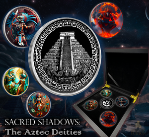 Experience the beauty and history of the Aztec civilization with our Boxed Set of 5 Aztec Shadows Colorized .999 Silver Medals. This set includes 5 stunning 1oz silver medals, featuring intricate designs symbolizing Death, War, Duality, Water, and a Completer centerpiece. Perfect for any collector or history enthusiast.