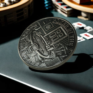 Place your bets and let the fun begin! This 1oz ADVP antique silver-plated copper chip offers the best of both worlds: a playful design with poker in the back and liquor in the front.