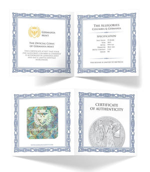 • Suggests that the coin features allegorical representations of Columbia (personification of the United States) and Germania (personification of Germany).