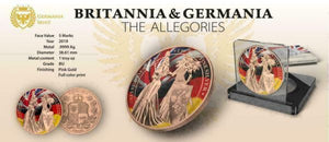 • The obverse of the coin may showcase images related to Germania and Britannia, possibly featuring symbolic flags. The reverse side might display the denomination, mintmark, and complementary design elements.
