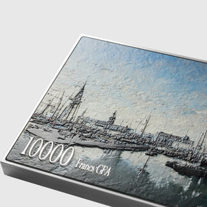On a canvas of 165 x 125mm, a new minting technique called “Tri-Metal ” was applied to give this piece its remarkable weight while keeping its proportions true to the actual painting. This is made possible by combining 750g of Zinc as a center layer and 120g of copper as a base with a top layer of 2.5 oz of 999 fine Silver, resulting in a high relief. This is a limited edition of 399 pieces only. Each piece is packaged and delivered with a Certificate verifying its edition number and authenticity.