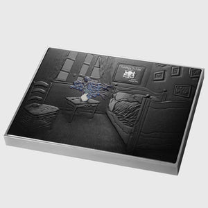 On a canvas of 165 x 125mm, a new minting technique called “Tri-Metal ” was applied to give this piece its remarkable weight while keeping its proportions true to the actual painting. This is made possible by combining 750g of Zinc as a center layer and 120g of copper as a base with a top layer of 2.5 oz of 999 fine Silver, resulting in a high relief. This is a limited edition of 399 pieces only. Each piece is packaged and delivered with a Certificate verifying its edition number and authenticity.