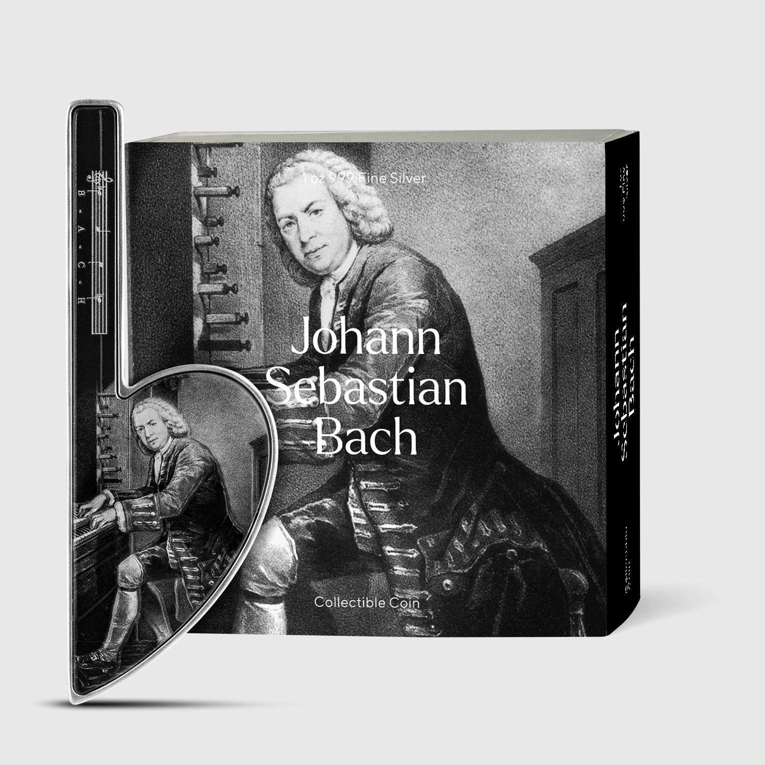 A new minting technique called “Bi-Metal Max” was applied to give this piece its remarkable weight and size in a dimension of 42x120mm. This is made possible by combining 5.6 oz of copper as a base with a top layer of 1 oz of 999 fine Silver and it is shaped to finish of the highest precision. This is a limited edition of 688 pieces only. The artistic display of this piece shows Bach as his work and captures the essence of what the artist is best known for. Each piece is packaged and delivered with a Certificate verifying its edition number and authenticity.