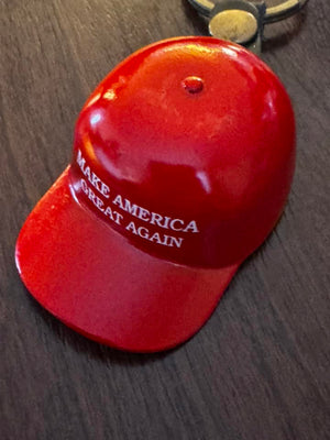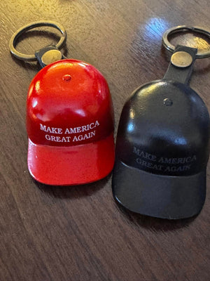 This Novelty Bottle opener and Keychain features a MAGA Trump design and functions as a keychain and bottle cap opener. Show your support for America with this versatile accessory.