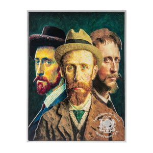 On a canvas of 165 x 125mm, a new minting technique called “Tri-Metal ” was applied to give this piece its remarkable weight while keeping its proportions true to the actual painting. This is made possible by combining 750g of Zinc as a center layer and 120g of copper as a base with a top layer of 2.5 oz of 999 fine Silver, resulting in a high relief. This is a limited edition of 399 pieces only. Each piece is packaged and delivered with a Certificate verifying its edition number and authenticity.