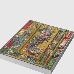 On a canvas of 165 x 125mm, a new minting technique called “Tri-Metal” was applied to give this piece its remarkable weight while keeping its proportions true to the actual painting. This is made possible by combining 750g of Zinc as a center layer and 120g of copper as a base with a top layer of 2.5 oz of 999 fine Silver, resulting in a high relief. This is a limited edition of 399 pieces only. Each piece is packaged and delivered with a Certificate verifying its edition number and authenticity.