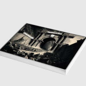 The artwork depicts George Washington leading his troops across the icy Delaware River on the night of December 25, 1776, in a surprise attack against Hessian forces in Trenton, New Jersey. Washington, standing at the bow of the boat, is the central figure, embodying courage and leadership as he gazes ahead with unwavering resolve. The painting’s dramatic lighting and composition highlight the treacherous conditions of the crossing—choppy waters, drifting ice, and an overcast sky—all emphasizing the difficulty of the mission. Surrounding Washington are soldiers representing the diversity of the Continental Army, including farmers, frontiersmen, and African American and Native American fighters. The flag bearer, prominently displaying the early American flag, reinforces the sense of unity and patriotism. The rowers, struggling against the river’s currents, symbolizes perseverance and the collective effort required for the success of the revolution.