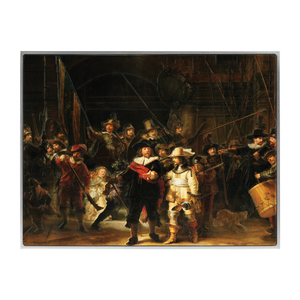 Rembrandt’s “The Night Watch” is a monumental and dynamic masterpiece that redefined the conventions of group portraiture in 17th-century Dutch art. Painted in 1642 at the height of the Dutch Golden Age, the work formally titled “Militia Company of District II under the Command of Captain Frans Bannick Cocq” captures a civic guard company not in static poses, but in vivid motion—marching, turning, gesturing, and engaging with one another in a burst of theatrical energy. Far more than a commemorative group portrait, the painting is a dramatic and complex tableau that showcases Rembrandt’s virtuosity in storytelling, composition, and light.