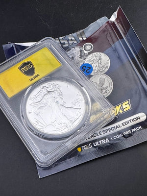 Discover the Ultra Breaks Silver Eagle PCGS MS70 Type 1, a pristine 1 oz silver coin prized by collectors.