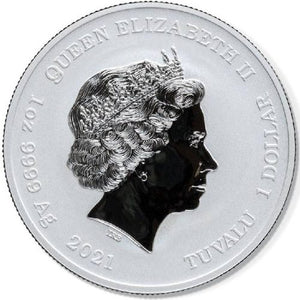 The obverse of the 2021 1 oz Wolverine Silver Coin features the right-profile portrait of Queen Elizabeth II. Her Majesty’s image was crafted in 1998 by Rank-Broadley, and it represents the fourth generation image of the Queen on commonwealth coinage.
